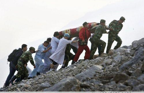 救援隊(duì)員:“同志挺住,馬上就好,馬上就好!”“醫(yī)療隊(duì)!擔(dān)架——”